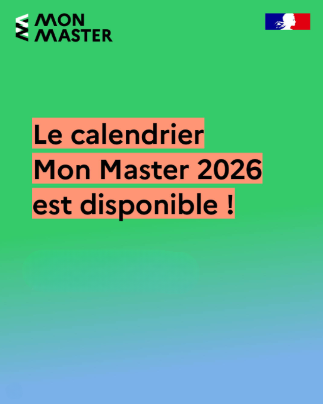Mon Master, la plateforme unique d'inscription destinée aux étudiants s'inscrivant en première année de master ouvrira le 2 février 2026 avec l'offre des formations disponibles à partir de la rentrée 2026.
