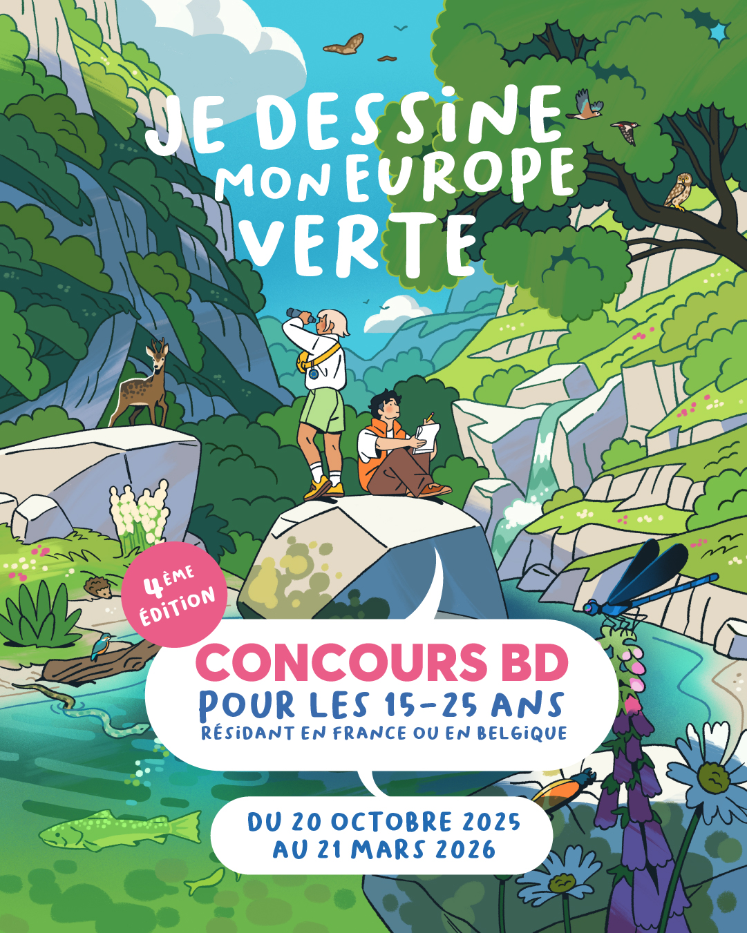 Du 20 octobre 2025 au 21 mars 2026, le CIDJ lance la 4ème édition du concours BD « Je dessine mon Europe verte ».
