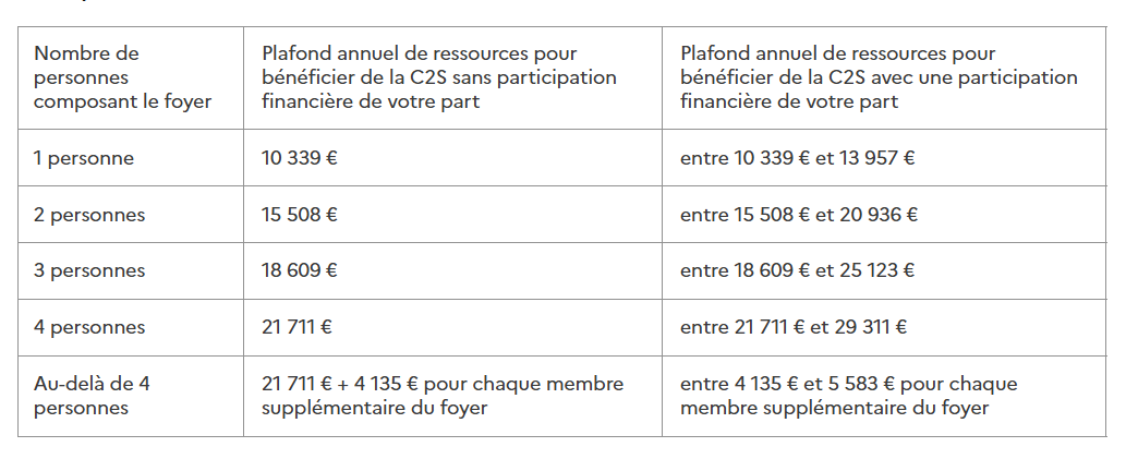 Plafonds de ressources pour pouvoir bénéficier de la C2S en métropole