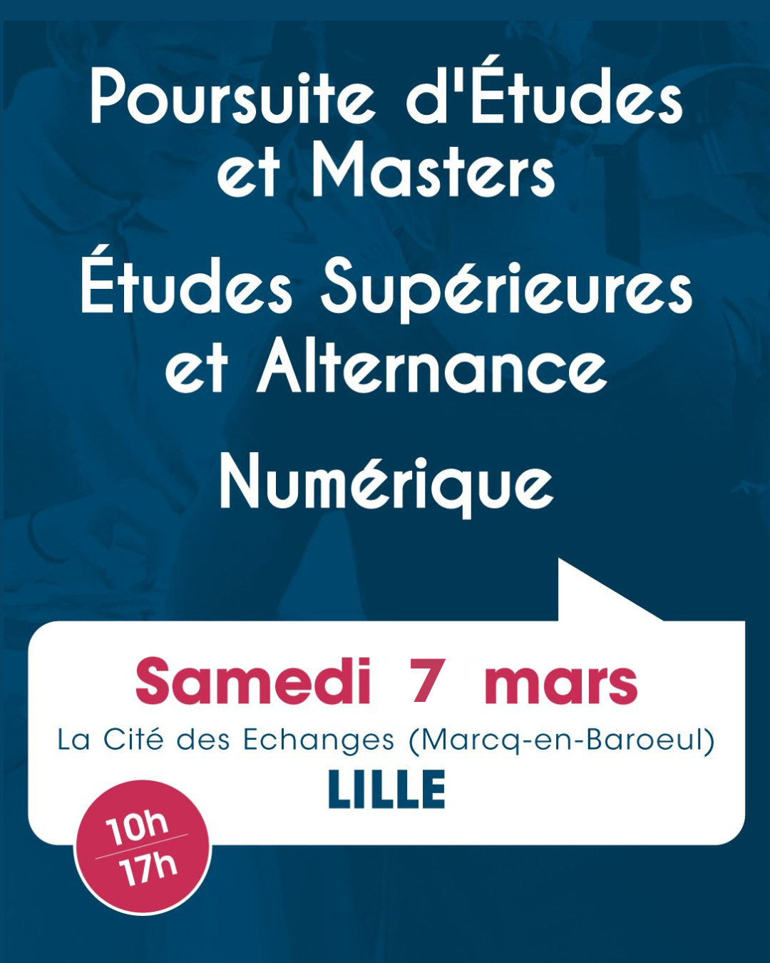 - Le Salon Studyrama de la Poursuite d'études et masters : vous pourrez échanger avec des responsables des meilleurs Masters, des professionnels et des étudiants à votre écoute toute la journée
