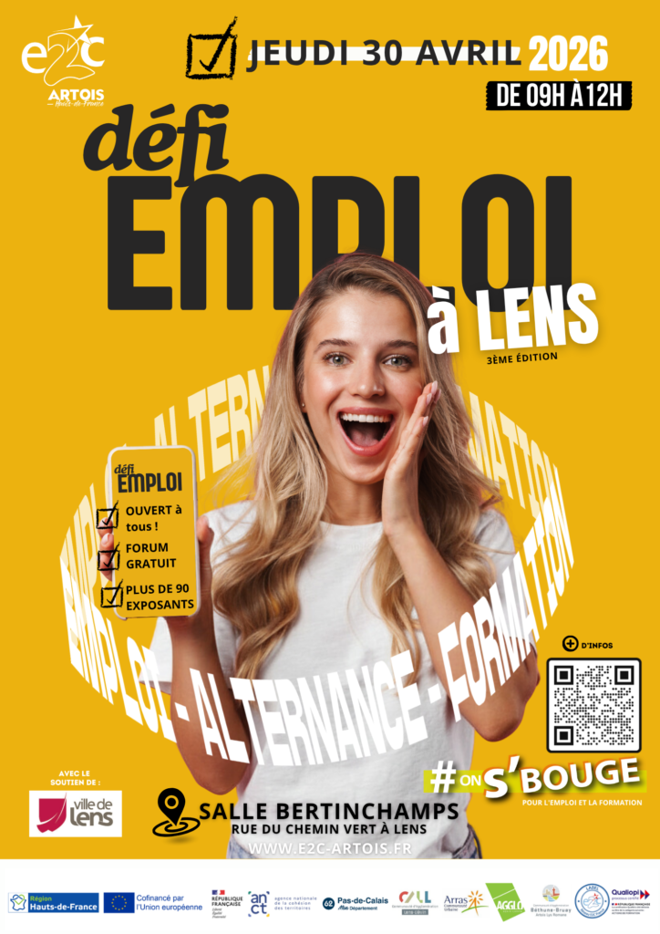 Organisé par l'E2C Artois, et soutenu par la Ville de Lens, cet événement est une occasion unique pour les demandeurs d’emploi, les étudiants, les jeunes diplômés et les professionnels en reconversion professionnelle de rencontrer des employeurs potentiels et de découvrir de nouvelles opportunités de carrière.