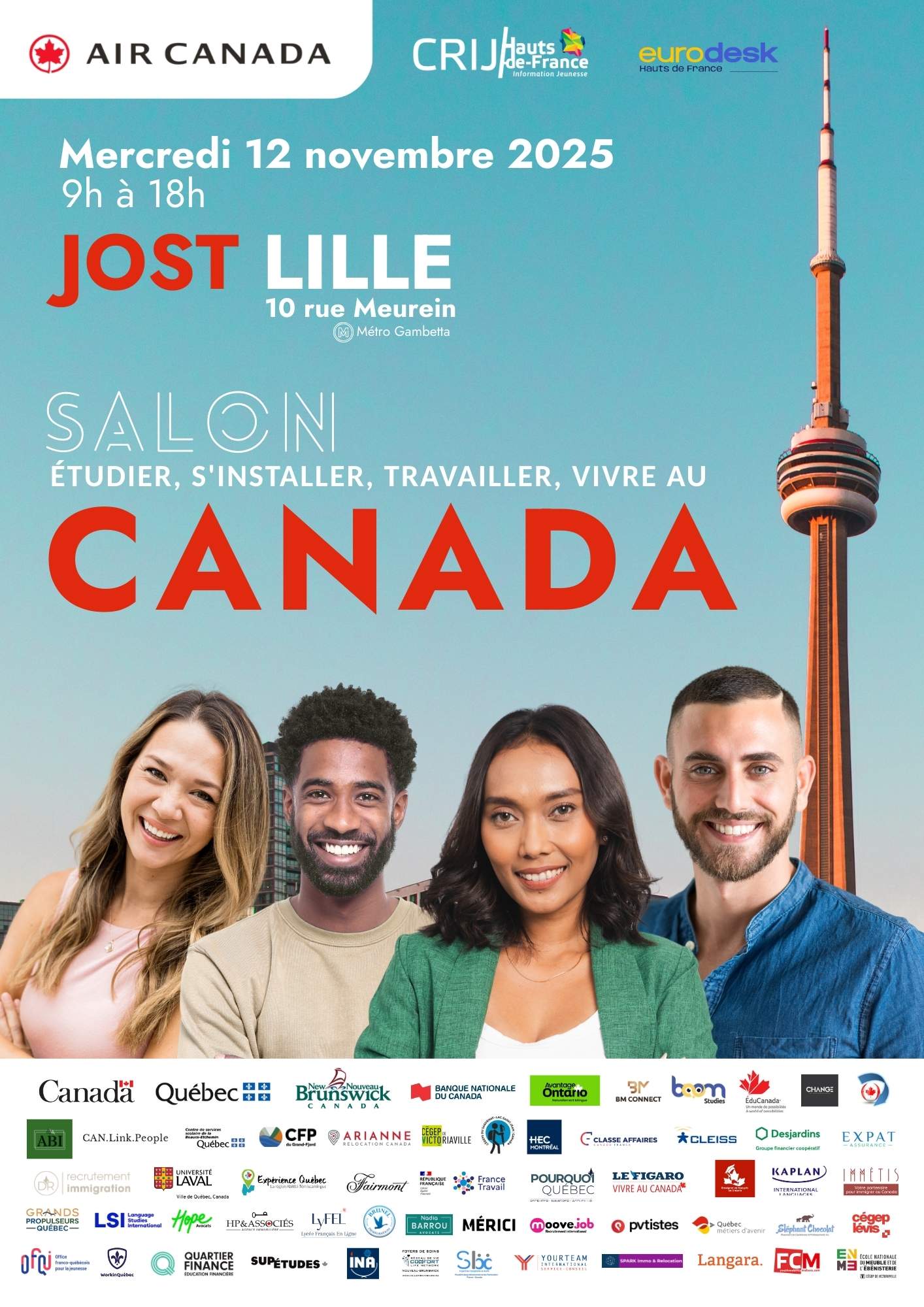 Rendez-vous le mercredi 12 novembre au Jost (10 rue Meurein) à Lille pour découvrir toutes les possibilités pour vivre de façon optimale son expérience canadienne.- Étudier au Canada : universités, Cégeps et établissements de formation canadiens présenteront leurs programmes d’études et cursus accessibles aux étudiants internationaux. Une occasion unique de découvrir les filières et diplômes pour partir étudier au Canada.