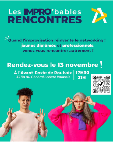 Le 13 novembre, l’Apec Hauts-de-France vous donne rendez-vous à L’Avant-Poste de Roubaix, de 17h30 à 21h, pour un événement unique "Les Impro'bables rencontres".
